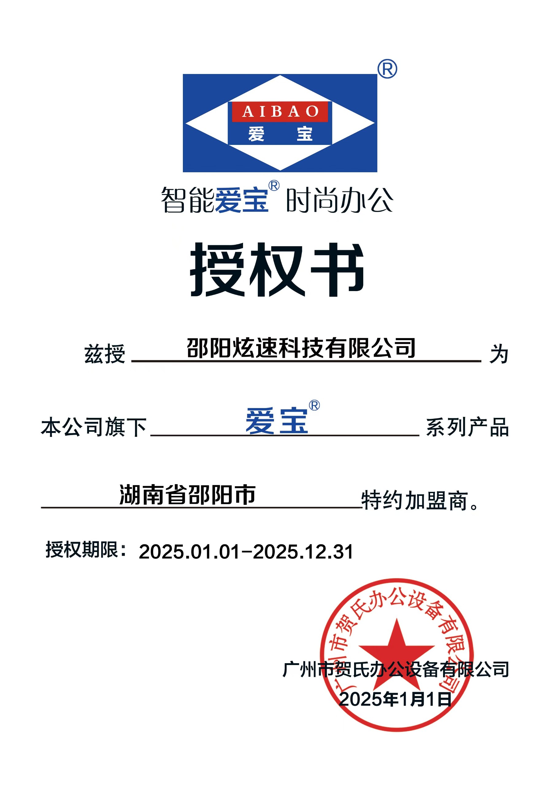 湖南愛寶-授權(quán)證書